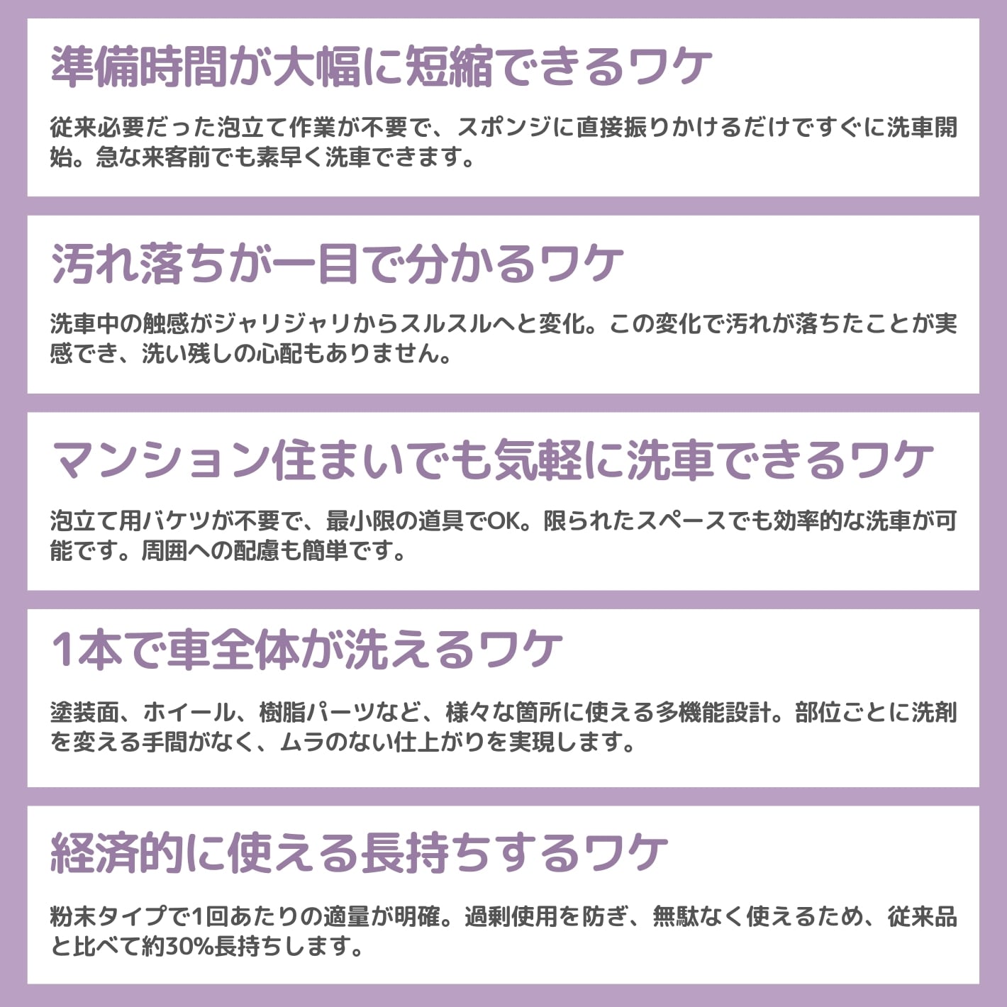CPWは汚れ落とし性能はDTXに比べると落ちるのですが中性シャンプーより上の性能となりますのでコーティングがかかってる車でしたら十分綺麗にすることができるのとDTXに比べるとコスパがいいので普段のお手入れはこちらにしていただくといいです。