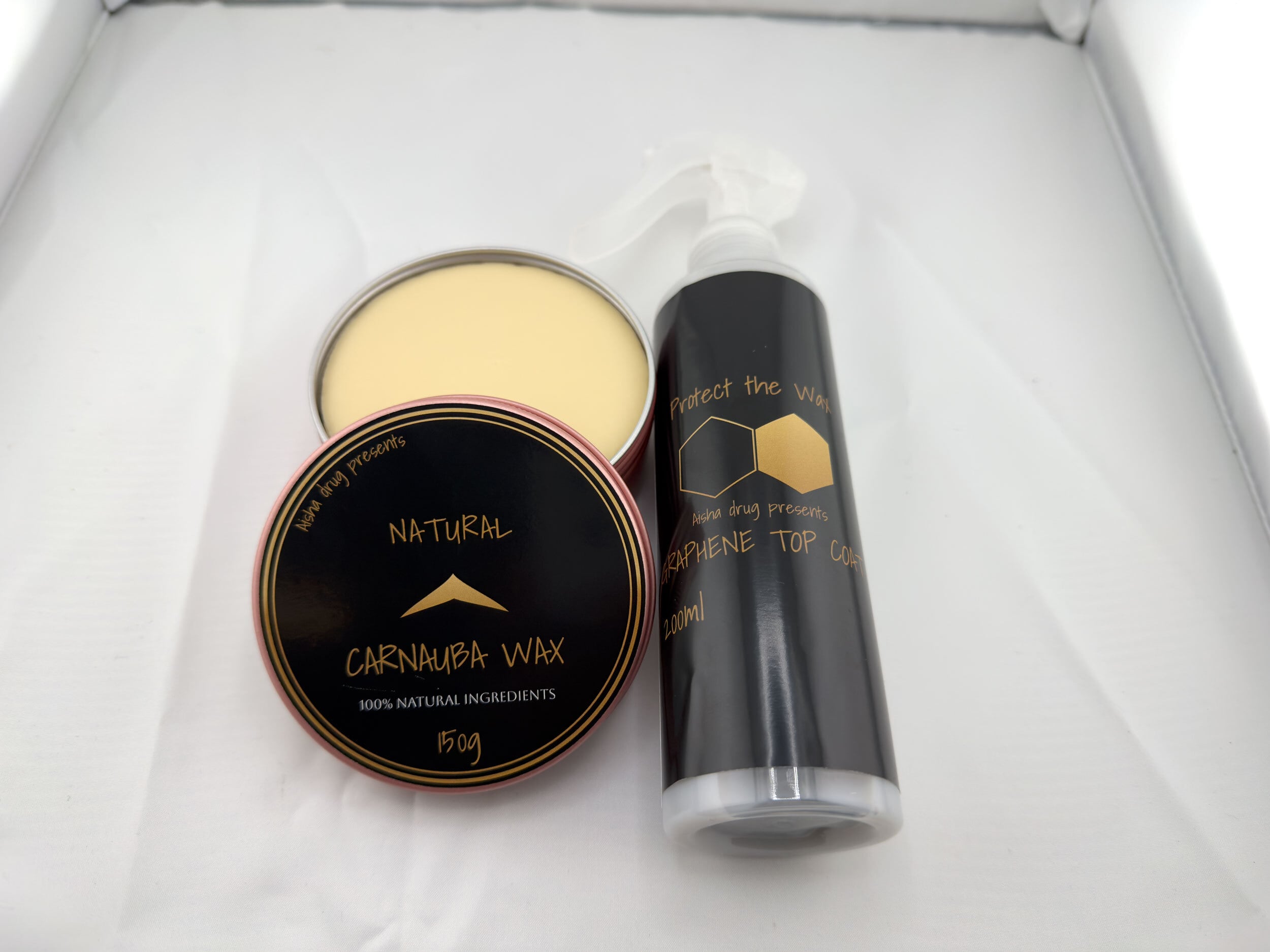 このセットは、最高級カルナバワックスが生み出す芸術的なウェットルックを、最先端のグラフェントップコートで保護し、昇華させるために生まれました。個々でも頂点を極める製品が、重なり合うことで唯一無二の価値を創出します。