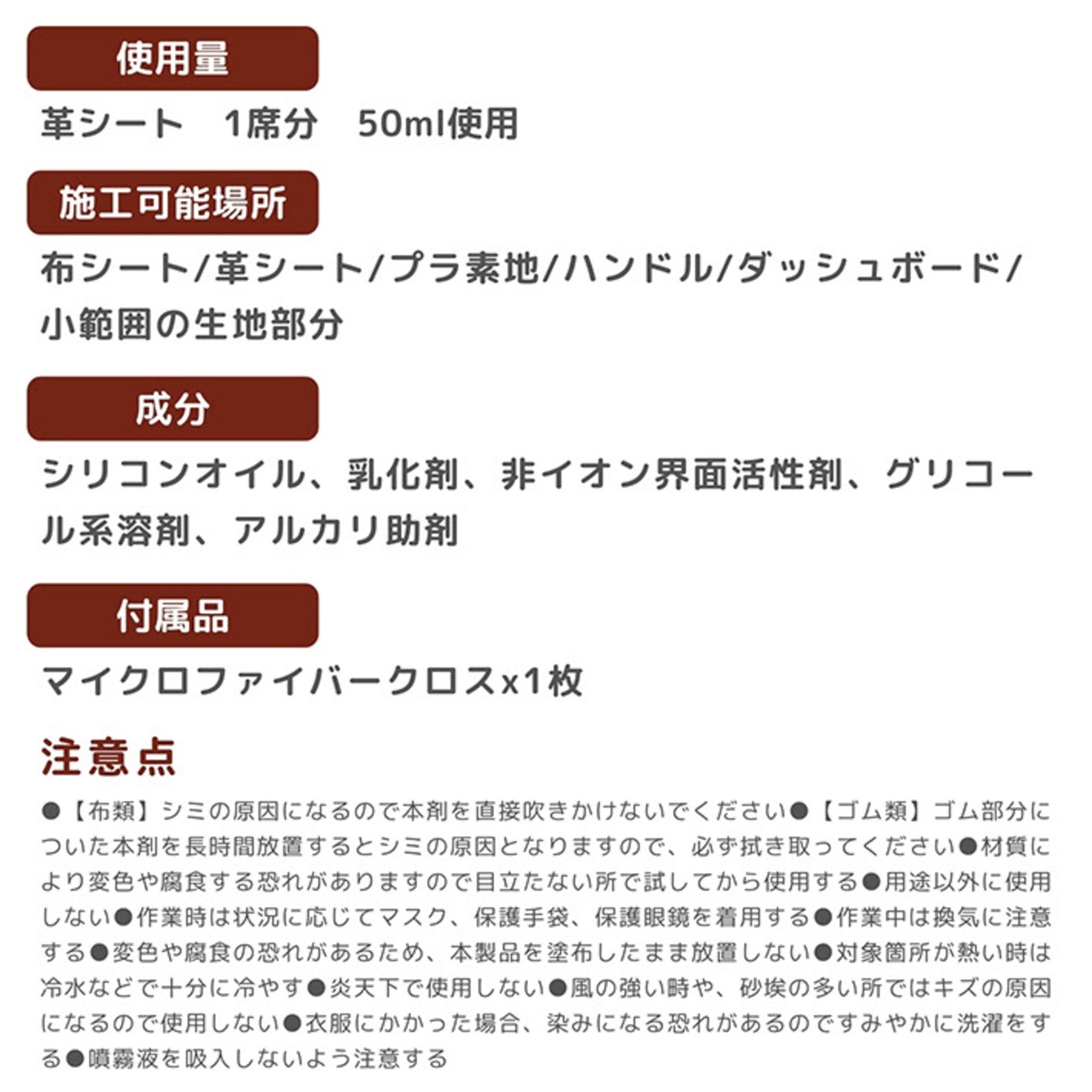 汚れの再付着を抑える防汚コーティング・抗菌機能もあり、今まで内装クリーニングで複数必要だった液剤や工程が、1本で完結することが可能です。