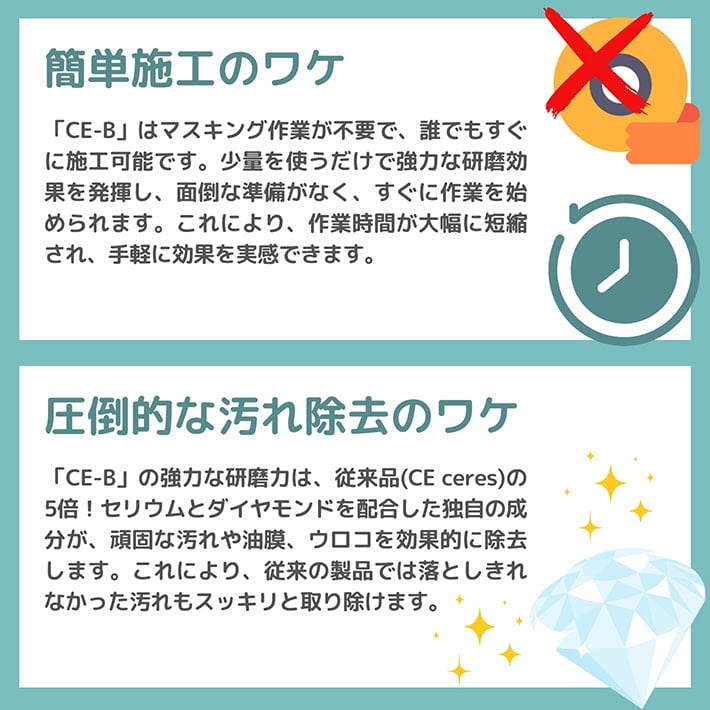 CE-Bを使用することで、限定ガラスがきれいになるだけではありません。